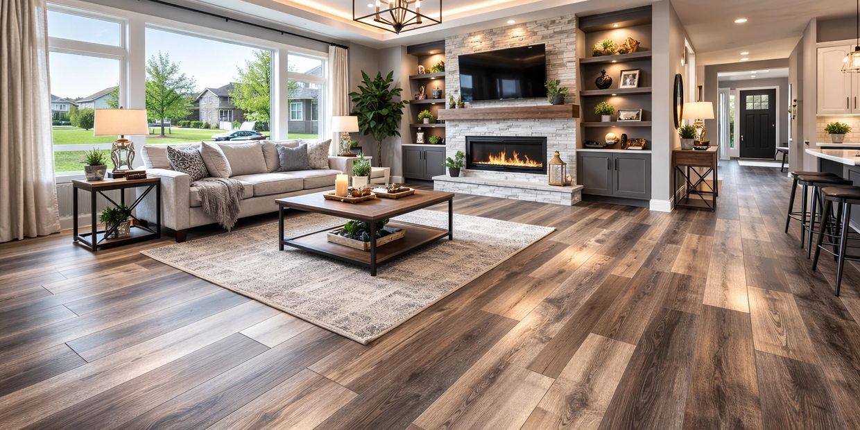 Upgrade your home in Farmington Hills, MI with premium luxury vinyl plank flooring that combines the natural look of hardwood with superior durability and water resistance. This beautifully designed open-concept living room features expertly installed LVP flooring, perfect for busy households seeking both elegance and performance. At The Flooring Company, we offer in-stock selections and professional installation to deliver fast, high-quality results you can trust.
